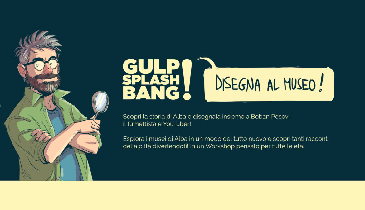 I workshop sono realizzati nell’ambito del progetto Gulp! Splash! Bang! Racconti digitali a fumetti del Sistema Museale Albese, con capofila il Mudi – Museo Diocesano, pensato per aiutare il pubblico dei musei di Alba a comprendere i contenuti, l’arte e la storia in modo divertente ed innovativo e per far conoscere queste realtà ad un numero di visitatori sempre più ampio.